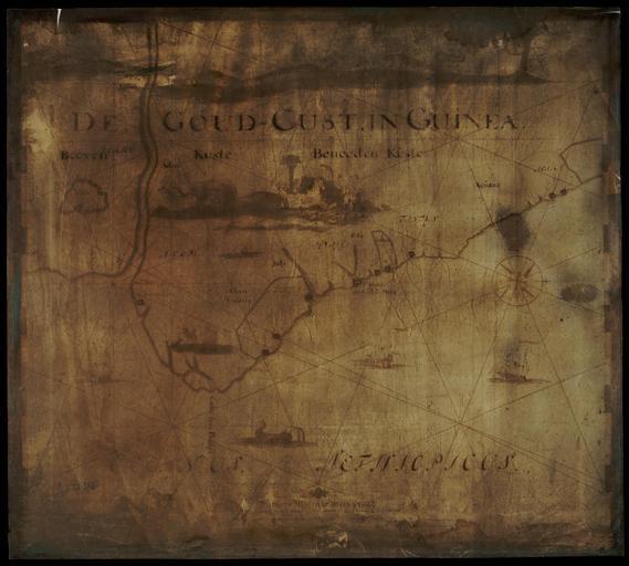 | Keywords: AMH-7741-NA Map of the Gold Coast.jpg Artwork nl Kaart van de Goudkust nl Kaart van de Goudkust Titel catalogus Leupe NA De Goudkust in Guinea De Goud-Cust in Guinea De kaart verkeert in een slechte materiƫle staat en Map of the Gold Coast Title in the Leupe catalogue NA De Goudkust in Guinea De Goud-Cust in Guinea The chart is in poor physical condition Atlas of Mutual Heritage na http //www atlasofmutualheritage nl/en/object/ id 7741 Source at the Atlas of Mutual Heritage - http //www gahetna nl/collectie/archief/inventaris/index/eadid/4 VELH/inventarisnr/86/level/file Source at the Nationaal Archief en Subjects chart / map / plan fauna ship / vessel compass / dial nl Onderwerpen plattegrond / kaart fauna schip / vaartuig kompas / windroos en Post this image is related to a WIC trading post called http //www atlasofmutualheritage nl/en/post/ id 915 Takoradi Inscription De Goud-Cust in Guinea nl between 1600 1700 nl Anoniem / Anonymous landmeter / kaartenmaker en Anoniem / Anonymous land surveyor / mapmaker Institution Nationaal Archief nl pen op perkament en pen on parchment Size cm 63 5 71 accession number NL-HaNA_4 VELH_86 old number VELH0086 PD-Art-100 Maps of the West-Indische Compagnie |