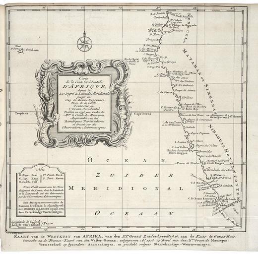 | Keywords: AMH-7883-KB Map of the west coast of Africa, from 11 degrees south latitude to the Cape of Good Hope.jpg Artwork nl Kaart van de Afrikaanse westkust van de 11e graad Zuiderbreedte tot de Kaap de Goede Hoop nl Kaart van de Afrikaanse westkust van de elfde graad Zuiderbreedte tot de Kaap de Goede Hoop Kaart van de Westkust van Afrika van den Xi e Graad Zuiderbreedte tot aan de Kaap de Goede-Hoop Carte / de la Coste Occidentale / d'Afrique / depuis le / XI e Degré de Latitude Meridionale / jusqu'au / Cap de Bonne Esperance Linksonder zijn de gebruikte afkortingen verklaard De kaart is overgenomen van een Franse kaart uit 1738 en Map of the west coast of Africa from 11 degrees south latitude to the Cape of Good Hope Kaart van de Westkust van Afrika van den Xi e Graad Zuiderbreedte tot aan de Kaap de Goede-Hoop Carte / de la Coste Occidentale / d'Afrique / depuis le / XI e Degré de Latitude Meridionale / jusqu'au / Cap de Bonne Esperance The abbreviations used are set out and explained bottom left The map has been copied from a French chart dating back to 1738 Atlas of Mutual Heritage kb http //www atlasofmutualheritage nl/en/object/ id 7883 Source at the Atlas of Mutual Heritage en Subjects chart / map / plan compass / dial banderole / cartouche / ornamentation key nl Onderwerpen plattegrond / kaart kompas / windroos banderol / cartouche / versiering legenda en Post this image is related to a VOC trading post called http //www atlasofmutualheritage nl/en/post/ id 937 Benguela Inscription Kaart van de Westkust van Afrika van den Xi e Graad Zuiderbreedte tot aan de Kaap de Goede-Hoop author J v Schley direx nl circa 1747 Creator Jacobus van der Schley Creator Pierre d' Hondt Creator Maurepas nl Jacobus van der Schley graveur / etser Pierre d' Hondt uitgever Maurepas gewerkt naar Anoniem / Anonymous landmeter / kaartenmaker en Jacobus van der Schley engraver / etcher Pierre d' Hondt publisher Maurepas copied after Anoniem / Anonymous land surveyor / mapmaker Institution Koninklijke Bibliotheek nl gravure op papier en engraving on paper Size cm 27 5 28 accession number 693 C 6 dl I na p 314 PD-Art-100 Old maps of the Dutch East India Company Maps of the Dutch East India Company - South Africa 1747 |