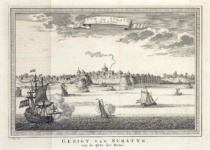 | Keywords: AMH-8002-KB View of Surat.jpg  Artwork nl Gezicht op Surat nl Gezicht op Surat Vue de Surate du côté de la Riviere Gezigt van Suratte van de Zyde der Rivier Bij het fort zijn kanonnen zichtbaar op de verschansing Vingboons beeldt dezelfde locatie af echter op zijn aquarel is de stad niet Suratte maar Visiapour te zien vergelijk Nationaal Archief inv nr VELH0619 105 Cf Koninklijke Bibliotheek inv nr 227K3 deel VII na p 104 Koninklijke Bibliotheek inv nr 388A4 deel I na p 28 en Rijksmuseum inv nr RP-P-1907-2820 en View of Surat Vue de Surate du côté de la Riviere Gezigt van Suratte van de Zyde der Rivier Cannons can be seen on the parapet alongside the fort Vingboons depicts the same location but in his watercolour it is not the city of Surat but that of Visiapour compare National Archives inv nr VELH0619 105 Cf Koninklijke Bibliotheek inv nr 227K3 part VII after p 104 Koninklijke Bibliotheek inv nr 388A4 part I after p 28 and Rijksmuseum inv nr RP-P-1907-2820 Atlas of Mutual Heritage kb http //www atlasofmutualheritage nl/en/object/ id 8002 Source at the Atlas of Mutual Heritage en Subjects survey / view church / parsonage banderole / cartouche / ornamentation ship / vessel building fortification house nl Onderwerpen overzicht / aanzicht kerk / pastorie banderol / cartouche / versiering schip / vaartuig gebouw vesting huis / woonhuis en Post this image is related to a VOC trading post called http //www atlasofmutualheritage nl/en/post/ id 341 Surat Inscription Vue de Surate du côté de la Riviere / Gezigt van Suratte van de Zyde der Rivier author J v Schley direx nl circa 1753 Creator Jacobus van der Schley Creator Pierre d' Hondt nl Jacobus van der Schley direxit Pierre d' Hondt uitgever en Jacobus van der Schley direxit Pierre d' Hondt publisher Institution Koninklijke Bibliotheek nl gravure op papier en engraving on paper Size cm 17 5 26 accession number 693 C 6 dl XI to p 289 PD-Art-100 Dutch East India Company 1753 |