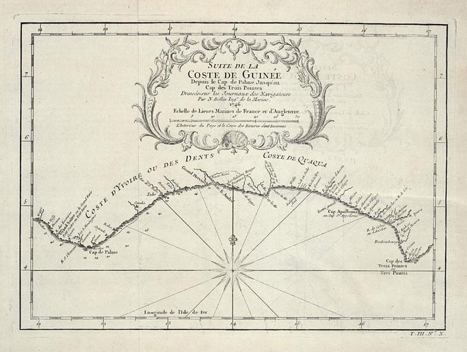 | Keywords: AMH-8070-KB Map of part of the Gold Coast.jpg Artwork nl Kaart van een deel van de Goudkust nl Kaart van een deel van de Goudkust Suite de la Coste de Guinée / Depuis le Cap de Palme Jusqu'au Cap des Trois Pointes Rechtsonder T III No X en Map of part of the Gold Coast Suite de la Coste de Guinée / Depuis le Cap de Palme Jusqu'au Cap des Trois Pointes Bottom right T III No X Atlas of Mutual Heritage kb http //www atlasofmutualheritage nl/en/object/ id 8070 Source at the Atlas of Mutual Heritage en Subjects chart / map / plan compass / dial banderole / cartouche / ornamentation nl Onderwerpen plattegrond / kaart kompas / windroos banderol / cartouche / versiering en Post this image is related to a WIC trading post called http //www atlasofmutualheritage nl/en/post/ id 685 Axim Inscription Suite de la Coste de Guinée author Par N Bellin Ingr de la Marine 1746 nl 1746 Creator Jacques Nicolas Bellin Creator Didot nl Jacques Nicolas Bellin landmeter / kaartenmaker Didot uitgever en Jacques Nicolas Bellin land surveyor / mapmaker Didot publisher Institution Koninklijke Bibliotheek nl gravure op papier en engraving on paper Size cm 16 5 22 accession number 693 C 5 dl III to p 625 PD-Art-100 Maps of the West-Indische Compagnie 1746 |