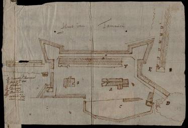 | Keywords: AMH-8573-NA Floor plan of the Tamarica fort.jpg Artwork nl Plattegrond van het fort Tamarica nl Plattegrond van het fort Tamarica Titel in Catalogus Leupe NA Plan van het Kasteel Tamarica Plant van Tamarica Legenda A-F Rechtsonder in potlood n 87 en Floor plan of the Tamarica fort Title in the Leupe Catalogue NA Plan van het Kasteel Tamarica Plant van Tamarica Key A-F Bottom right in pencil n 87 Atlas of Mutual Heritage na http //www atlasofmutualheritage nl/en/object/ id 8573 Source at the Atlas of Mutual Heritage - http //www gahetna nl/collectie/archief/inventaris/index/eadid/4 VEL/inventarisnr/702/level/file Source at the Nationaal Archief en Subjects chart / map / plan key fortification building nl Onderwerpen plattegrond / kaart legenda vesting gebouw en Post this image is related to a WIC trading post called http //www atlasofmutualheritage nl/en/post/ id 1029 Itamaracà eiland Inscription Plant van Tamarica nl circa 1630 nl Anoniem / Anonymous landmeter / kaartenmaker en Anoniem / Anonymous land surveyor / mapmaker Institution Nationaal Archief nl pen op papier en pen on paper Size cm 22 30 accession number NL-HaNA_4 VEL_702 old number VEL0702 PD-Art-100 Maps of the West-Indische Compagnie 1630 |