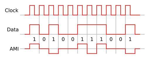 | Keywords: Ami encoding.svg An example of Alternate Mark Inversion encoding showing the relationship between input data clock and the encoded signa The encoded bit sequence '10100111001' It is assumed that the previous '1' was encoded as a negative going pulse 2006-03-15 own assumed Ktims Alternate mark inversion |