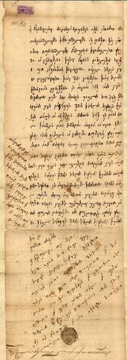 | Keywords: Amilakhvari. Erekle.jpg ka ამილახვრებს თუმა იშვილებისათვის აეკრძალათ ტყეში შეშის მ ჭრა და მი დ რში საქ ლის ძ ვება თუმა იშვილებმა დახმარებისთვის ერეკლე II-ს მიმართეს მეფემ საჩივარი გა იხილა და გადაწყვეტილება თუმა იშვილების სასარგებლ დ მიიღ ეს რ გ რი საქმე არის კაცს მაგისთა ა ვაება უზარმაზარი მთა ჰქ დეს ყ ვლის ხით სავსე და მი დვრის კაცს დასაწვავს შეშას და სახლის ხეტყეს არ ა ებებდეს ამისთა ა საქმე ვის დრ ს ქმ ილა და რ მელს დრ ს მ მხდარა აღარც ტყეში შესვლა დაუშალ თ და არც მი დ რში საქ ლის ძ ება 1785 წლის 28 ია ვარი en The document from Erekle the second http //www justice gov ge/samarTlebrivi 20dzeglebi/arqivi/amilakhvari jpg King Erekle the second 1785-01-28 PD-old-100 Erekle II Amilakhvari Mkhedruli manuscripts |