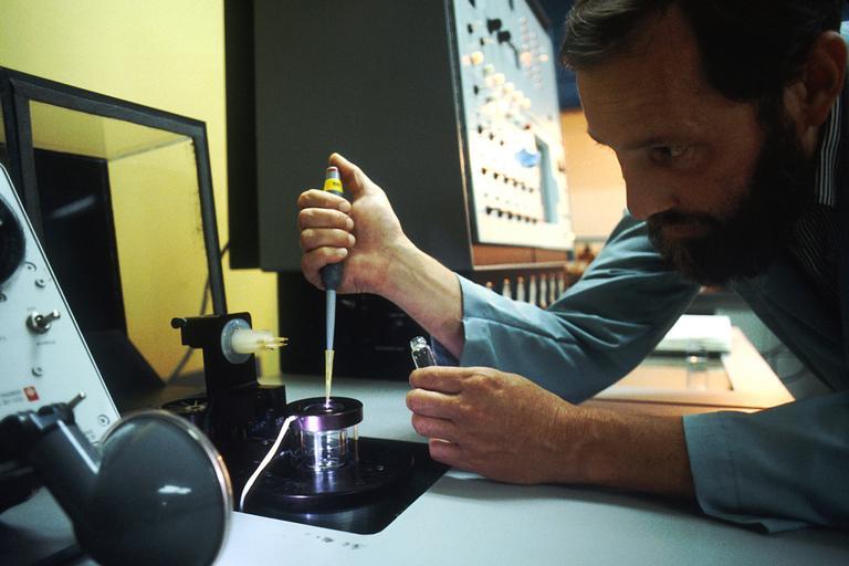| Keywords: Amino acid sequence.jpg A Caucasian male scientist is performing an amino acid analysis which is used to look at the detail of cellular molecules Knowing the genetic code and the way it relates to proteins made by the body are tools to understand cancer cells Topics/Categories People -- Adult People -- Health Professional Science and Technology -- Medical Devices Type Color Photo Source National Cancer Institute Linda Bartlett Photographer 2115 1980 Reuse Restrictions None - This image is in the public domain and can be freely reused Please credit the source and/or author listed above Linda Bartlett Photographer PD-USGov-HHS-NIH Media from National Cancer Institute Visuals Online Images uploaded by Fæ |