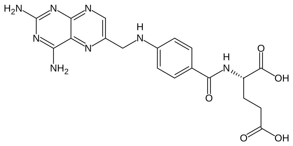 Keywords: Aminopterin.svg Structural diagram of aminopterin Created using http //www acdlabs com/download/chemsk html ACD/ChemSketch 10 0 and Inkscape Own 2007-02-03 Fvasconcellos N-substituted primary amides Aromatic amines Dicarboxylic acids Dihydrofolate reductase inhibitors Chemotherapeutic agents Nitrogen heterocycles Teratogens |