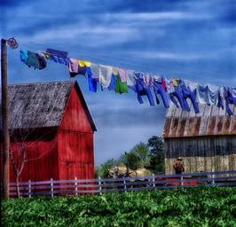 Keywords: amish farm rural horse field barn shed wagon country countryside drying clothes line fence hdr