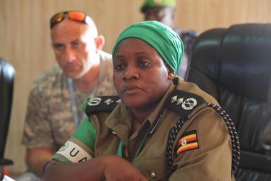 | Keywords: people The African Union Mission in Somalia (AMISOM) Deputy Police Commissioner Christine Alalo meets with the Interim Jubbaland Administration officials to discuss the progress of the Somali Police Force (SPF) training on October 15, 2015. AMISOM Photo/ Awil Abukar The African Union Mission in Somalia (AMISOM) Deputy Police Commissioner Christine Alalo meets with the Interim Jubbaland Administration officials to discuss the progress of the Somali Police Force (SPF) training on October 15, 2015. AMISOM Photo/ Awil Abukar |