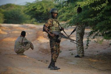 | Keywords: amisom sna operations mogadishu university somalia outdoor A Ugandan soldier serving with the African Union Mission in Somalia (AMISOM) stands just after sunrise 20 January with troops from the Somali National Army (SNA) during an advance into insurgent Al Shabaab territory. The operation saw SNA forces supported by AMSIOM push 3.5km further north from their previous forward defensive line along the industrial road to take the strategically important area of and around Mogadishu Univeristy, the very furthest northern point of the Somali capital and where the Al Qaeda-linked Al Shabaab planned and carried out attacks against the African Union mission, the Transitional Federal Government (TFG) and targets within the Somali capital.. AU-UN IST PHOTO / STUART PRICE. A Ugandan soldier serving with the African Union Mission in Somalia (AMISOM) stands just after sunrise 20 January with troops from the Somali National Army (SNA) during an advance into insurgent Al Shabaab territory. The operation saw SNA forces supported by AMSIOM push 3.5km further north from their previous forward defensive line along the industrial road to take the strategically important area of and around Mogadishu Univeristy, the very furthest northern point of the Somali capital and where the Al Qaeda-linked Al Shabaab planned and carried out attacks against the African Union mission, the Transitional Federal Government (TFG) and targets within the Somali capital.. AU-UN IST PHOTO / STUART PRICE. A Ugandan soldier serving with the African Union Mission in Somalia (AMISOM) stands just after sunrise 20 January with troops from the Somali National Army (SNA) during an advance into insurgent Al Shabaab territory. The operation saw SNA forces supported by AMSIOM push 3.5km further north from their previous forward defensive line along the industrial road to take the strategically important area of and around Mogadishu Univeristy, the very furthest northern point of the Somali capital and where the Al Qaeda-linked Al Shabaab planned and carried out attacks against the African Union mission, the Transitional Federal Government (TFG) and targets within the Somali capital.. AU-UN IST PHOTO / STUART PRICE. university operations somalia sna mogadishu amisom |