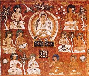 | Keywords: Amitâbha in His Western Paradise with Indians, Tibetians and Central Asians, Symbols - Sun and Cross.jpg de Amitâbha in seinem Westlichen Paradies mit Indern Tibetern und Zentralasiaten Symbole Sonne und Kreuz Fresko im Dreistocktempel von Alchi Ladakh West-Tibet 11 Jh n Chr en Amitâbha in His Western Paradise with Indians Tibetians and Central Asians Symbols Sun and Cross fresco in the Three-Level-Temple of Alchi Sumtsek Temple Ladakh West Tibet 11th c A D century 11 http //www celtoslavica de/imago/manichaica html anonymous other versions PD-old-100 Manichaeism Alchi Monastery |
