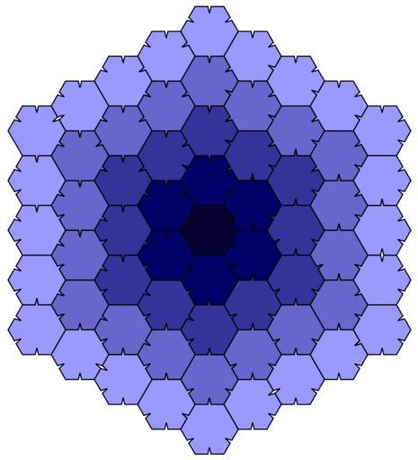 | Keywords: Amman-Heesch-4.svg polygon discovered by Robert Amman formed from a regular hexagon by adding projections on two of its sides and matching indentations on three sides It may be surrounded by four layers of congruent copies of itself but not five See Heesch's problem self-made originally for http //www ics uci edu/~eppstein/junkyard/heesch/ The Geometry Junkyard; also previously uploaded to en Image Amman-Heesch-4 gif 2000-04-16 David Eppstein Order-3 hexagonal tiling Files by User David Eppstein from en wikipedia Hexagonal tilings SVG geometry |