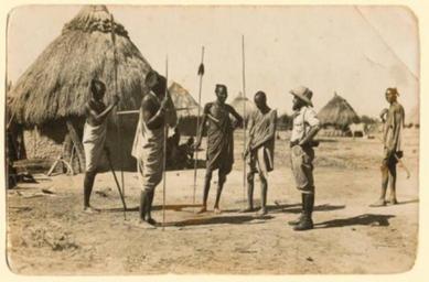 | Keywords: Among an African tribe.jpg Among an African tribe The photo probably taken by Kazimierz Nowak 1897-1937 the author is on the photo; taken probably by a self-timer during his trip through Africa - a Polish traveller correspondent and photographer Probably the first man in the world who crossed Africa alone from the North to the South and from the South to the North from 1931 to 1936; on foot by bicycle and canoe http //www poznajswiat com pl/art/1039 circa about 1931-36 probably Kazimierz Nowak or an unknown author PD-Art Kazimierz Nowak People of Africa Ethnic groups in Africa |