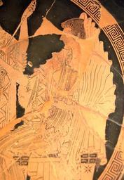 | Keywords: Amphitrite Louvre G104.jpg Euphronios potter signature ; Onesimos painter Theseus and Amphitrite with Athena looking on Interior from an Attic red-figure cup 500 “490 BC From Cerveteri ancient Caere Latium Thésée chez Amphitrite sous le regard d'Athéna Intérieur d'une coupe attique à figures rouge vers 500-490 av J -C Provenance Cerveteri Caeré H 9 6 cm 3 ¾ in Diam 39 9 cm 15 ½ in W 49 cm 19 ¼ in Museum Louvre Department of Greek Etruscan and Roman Antiquities Sully first floor room 43 case 22 Beazley Attic Red-figured Vase-Painters 1963 318 1 object history credit line Purchase 1871 accession number G 104 User Bibi Saint-Pol own work 2007-06-06 other versions <gallery> Image Theseus Athena Amphitrite Louvre G104 jpg Image Theseus Athena Louvre G104 jpg Image Detail Athena Louvre G104 jpg </gallery> Amphitrite Kylix interiors Euphronios Onesimos Greek antiquities in the Louvre - Room 43 500s BC 490s BC Ancient Greek pottery from Cerveteri |