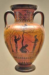 | Keywords: Amphora olive-gathering BM B226 01.jpg Artwork LangSwitch Το μάζεμα της ελιάς ελανόμορφος αττικός αμφορέας α ό τον ζωγράφο του Αντιμένη ερί ου 520 Χ Βρέθηκε στο Vulci της Ιταλίας Scene of olive-gathering by young people Attic black-figured neck-amphora ca 520 BC From Vulci Italy Scène de récolte d'olives par des adolescents Amphore à col attique à figures noires du Peintre d'Antiménès vers 520 av J -C Vulci - Italie Sul corpo lato A Incontro tra Eracle e Folo quest'ultimo con un ramo sulla spalla sinistra da cui pendono una lepre e una volpe e un uccello Dietro Eracle c'è Hermes seduto Sul corpo lato B raccolta delle olive Tre alberi su quello al centro un giovane nudo seduto con un bastone in mano con il quale scuote i rami Due figure vestite e con la barba battono gli alberi con lunghi bastoni Ai piedi dell'albero centrale c'è un giovane nudo in ginocchio che raccoglie in un cestino le olive cadute ~ 520 BCE black-figure pottery Size cm 40 64 Institution British Museum Upper floor room 69 Greece and Rome Daily Life case 3 British Museum online 399909 1837 0609 42 amphora object history Vulci Viterbo ProvenanceEvent 1837 purchase Lucien Bonaparte Prince of Canino and Musignano 1775 - 1840 credit line place of creation Athens accession number 1837 0609 42 Cat Vases B 226 File Amphora olive-gathering BM B226 jpg Potographer Steff own Original uploader was Cornischong at http //lb wikipedia org lb wikipedia 2006 05 20 original upload date other versions <gallery> File Amphor h jpg File Greek pottery png File Greek potteryOlive jpg </gallery> Original upload log page lb wikipedia Amphor_h jpg 2006-05-20 15 48 Cornischong 395×599× 128636 bytes <nowiki> Object Black-figure neck-amphora by the Antimenes Painter ; Subject Scene of olive-gathering by young people ; Origin Athens Greece ; Date Circa 520 BC ; Location British Museum B 226 London ; Photographer User Commons Steff </nowiki> Amphora olive-gathering British Museum B226 |