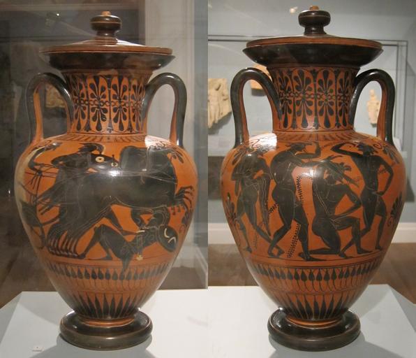 | Keywords: Amphora with lid attributed to the Acheloos Painter, HAA.jpg en Amphora wine container with lid attributed to the Acheloos Painter Attic c 530 BCE black-figure terracotta Honolulu Academy of Arts own Hiart photo 2011 Cc-zero Acheloos Painter Attic black-figure pottery Ancient Greek Neck amphoras Ancient Greek pottery in the Honolulu Museum of Art 530s BC pottery Usa 6th-century BC pottery in the United States Amphoras with lid | ||||