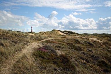 Keywords: amrum nordfriesland lighthouse dunes clouds summer wide island