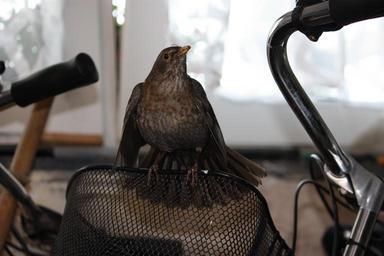 Keywords: Amsel weiblich Drohhaltung.JPG en female blackbird with threatening posture to protect the chicks de Weibliche Amsel mit Drohgebärde zum Schutz ihrer Küken own Romate 2010-05-31 Münster Westfalen Germany Turdus merula female