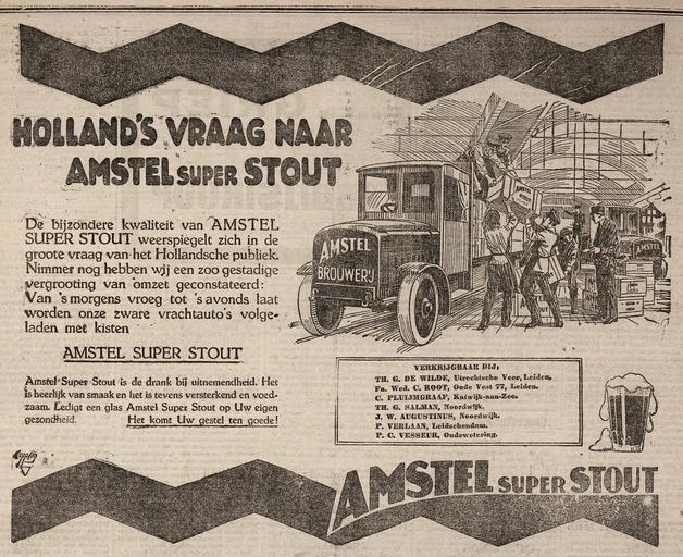| Keywords: Amstel Beer advertisement 1922.jpg en A large advertisement half a page for Amstel super Stout -beer published in the Leidsch Dagblad of 23 December 1922 Leiden Netherlands nl Een advertentie van een halve pagina voor Amstel super Stout -bier uit het Leidsch Dagblad van 23 december 1922 Leidsch Dagblad a Dutch newspaper from 23 December 1922 author 1922-12-23 This advertisement is in the public domain Het auteursrecht in Nederland vervalt 70 jaar na de eerste openbaarmaking van het werk indien het gaat om een anoniem of om een onder pseudoniem verschenen werk of werk van een rechtspersoon PD-old Amstel Brewery Beer advertising Advertisements in the Netherlands 1922 advertisements |