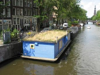 Keywords: amsterdam the barge channel house on the water the grass on the roof