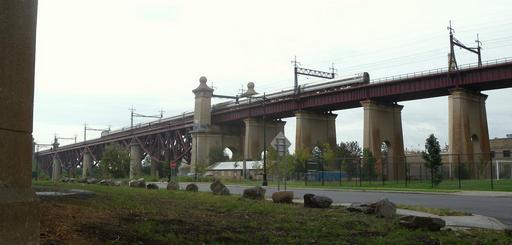 MAKE A MEME View Large Image Amtrak northb train Randalls Island.jpg en Looking northeast at Amtrak train crossing the former Little Hell Gate northbound on Randalls Island viaduct on a cloudy afternoon own Jim henderson 2010-08-12 40 47 21 N 73 55 37 2 W alt 0_source ...