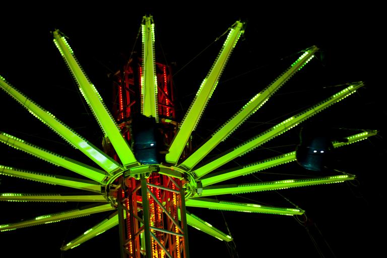 Keywords: amusement attraction carnival carousel green dark dizzy entertainment fair festival high light lights night park ride spin swing tower wheel