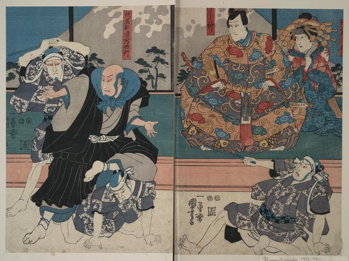 | Keywords: An Actor in the Role of Sato Norikiyo who Becomes Saigyo- An Actor in the Role of Yoshinaka WDL10.png Artwork ru Утагава Куниёси 1798-1861 гг fr Utagawa Kuniyoshi 1798-1861 en Utagawa Kuniyoshi 1798-1861 zh 歌 国芳,1798-1861 年 pt Utagawa Kuniyoshi 1798-1861 ar أوتاغاوا، كونيوشي، 1798-1861 es Utagawa Kuniyoshi 1798-1861 ru Акте в оли Сато о икиё кото ый становится Сайгё Акте в оли Ёсинака fr Un acteur dans le rôle de Sato Norikiyo qui devient Saigyo un acteur dans le rôle de Yoshinaka en An Actor in the Role of Sato Norikiyo who Becomes Saigyo An Actor in the Role of Yoshinaka zh 扮演佐藤義清角色的演员 - 谁成为西行 扮演 曾义仲角色的演员 pt Um Ator no papel de Sato Norikiyo que se tornou Saigyo Um ator no papel de Yoshinaka ar ممثل في دور ساتو نوريكيو الذي يصبح سايغيو ممثل في دور يوشيناكا ru Японское изоб азительное искусство Укиё-э Об азы плывущего или печального ми а за одилось в го оде Эдо ныне Токио в пе иод Токугава или Эдо 1600-1868 гг в с авнительное ми ное в емя когда Японией п авили сёгуны Токугава сделавшие Эдо столицей Ксилог афическая т адиция Укиё-э п осуществовала доXX века а данном диптихе дати ованном 1849-1852 гг изоб ажен Сайгио ок уженный мужчинами кото ые пытаются не позволить ему уйти из дома и стать священником Поэт Сайгио 1118-90 одился в а исток атической семье военных но не пошел по военной стезе а п инял сан буддисткого священника в воз есте около 22-х лет fr L'art japonais de l ukiyo-e « Images du monde flottant ou souffrant » est né dans la ville d'Edo aujourd'hui Tokyo durant l'époque de Tokugawa ou d'Edo 1600-1868 une époque relativement paisible durant laquelle les shoguns Tokugawa gouvernaient le Japon et ont fait d'Edo le siège du pouvoir La tradition d'estampes et de peintures sur bois ukiyo-e s'est poursuivie jusqu'au XXe siècle Cette estampe en diptyque réalisée entre 1849 et 1852 montre Saigyo entouré d'hommes essayant de l'empêcher de quitter sa maison pour devenir prêtre Le poète Saigyo 1118-1190 était issu d'une famille aristocratique militaire mais il a rejeté la vie de guerrier et il est entré dans les ordres comme moine bouddhiste quand il avait environ 22 ans en The Japanese art of Ukiyo-e Pictures of the floating or sorrowful world developed in the city of Edo now Tokyo during the Tokugawa or Edo Period 1600-1868 a relatively peaceful era during which the Tokugawa shoguns ruled Japan and made Edo the seat of power The Ukiyo-e tradition of woodblock printing and painting continued into the 20th century This diptych print of between 1849 and 1852 shows Saigyō surrounded by men trying to prevent him from leaving his house to become a priest The poet Saigyō 1118-90 was born into an aristocratic military family but rejected the warrior s life and took orders as a Buddhist priest when he was about 22 years old zh 日 艺 浮世绘(虚浮 或凄惨 世界的绘画)于德 或江户时代(1600-1868年) 江户(现 京)发展 兴起 这是 段相对和平的时代, 此 间,德 将军统治 日 ,江户成为 力中心 浮世绘的传统 版画 直持续到 20 世纪 这幅创 于 1849 年至 1852 年间的折叠双连画描述的是 群人正围 西行法师阻止他出家的情形 西行法师(1118-90 年)是 位诗人,出生于贵族武士家庭,但他拒 让自己成为武士的命运安排,并 约 22 岁时出家为僧 pt A arte japonesa de Ukiyo-e Fotos do mundo flutuante ou triste desenvolveu-se na cidade de Edo hoje Tóquio durante o Período Edo ou Tokugawa 1600-1868 uma época relativamente pacífica durante a qual os shoguns Tokugawa governaram o Japão e tornaram Edo a base do poder A tradição Ukiyo-e de pintura e estampa em xilogravura continuou pelo século XX século XX Esta gravura díptica do período entre 1849 e 1852 mostra Saigyō cercado por homens que tentam impedí-lo de sair de sua casa para tornar-se sacerdote O poeta Saigyō 1118-90 nasceu em uma família aristocrática militar mas rejeitou a vida de guerreiro e ordenou-se sacerdote budista quando tinha cerca de 22 anos ar تطور فن الأُكيّو-إي الياباني صور العالم الطافي أو الحزين في مدينة إيدو طوكيو حالياً خلال فترة التوكوغاوا أو الإيدو 1600-1868 ، وهي فترةُ استقرار نسبي حَكَم اليابان خلالها الشوغون التوكوغاوا واتخذوا إيدو مقرا لهم استمرت تقاليد الأوكيّو-إي في استعمال الرَوْسم الخشبي في الطباعة والرسم حتى القرن العشرين هذه الطبعة المنسوخة من لوح الدبتك المزدوج التي ترجع إلى الفترة ما بين 1849 إلى 1852 تُظهر سايغيو محاطاً برجال يحاولون منعه من مغادرة بيته ليصبح كاهناً ولد الشاعر سايغيو 1118-1190 في عائلة عسكرية ارستقراطية ولكنه رفض حياة المحارب وأصبح كاهنا بوذيا عندما بلغ من العمر حوالي 22 عاما es El arte japonés de ukiyo-e «pinturas del mundo flotante o triste» se desarrolló en la ciudad de Edo actualmente Tokio durante el período Edo o Tokugawa 1600-1868 una época relativamente pacífica durante la cual los sogunes Tokugawa gobernaron Japón e hicieron de Edo la sede del poder 