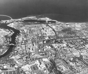 | Keywords: aerial view aerialview blackandwhite monochrome outdoor black and white Reference: DT.TUR-7-27-33-J This photograph has been taken from the Turners Collection at Tyne & Wear Archives. Turners were a commercial photographic company based at Pink Lane, in Newcastle upon Tyne. These Aerial Photographs of Sunderland were taken in 1969. Inspired by the upcoming Grayson Perry exhibition 'The Vanity in small differences' Tyne & Wear Archives have created this set in reaction to some of the themes surrounding Sunderland and its social make up that have been explored by Grayson Perry in his six large scale tapestries. This set features both Social and Landscape Photography of a nostalgic Sunderland; these consist of both Aerial views of the physical make up of Sunderland's landscape, mixed with social portraits of the working community and industrial scenes traditionally associated with Sunderland's Heritage. Both are relevant to Grayson Perry's upcoming collection of Tapestries exploring the story of class mobility and the influence social class has on our aesthetic taste. When recently interviewed on the subject Perry states "When I asked club singer Sean Foster-Conley what I should feature in my tapestries to show working-class taste, he said “the mines and shipyards”. “But they no longer exist,” I replied. In a very important way, however, he was right. The heavy industries that shaped the north of England also shaped the emotional lives of the generations of people who lived there. Winding towers and cranes can be torn down in a day, but the bonds, formed through shared hardship working under them, live on." These images of a community driven by industry, mixed with Aerial Views of the physical make up of Sunderland during this time reflect on Perry's view of the eternal relevance that Sunderland's social and industrial past has on its present community. More information on 'The Vanity of Small Differences' can be found here. (Copyright) We're happy for you to share these digital images within the spirit of The Commons. Please cite 'Tyne & Wear Archives & Museums' when reusing. Certain restrictions on high quality reproductions and commercial use of the original physical version apply though; if you're unsure please email archives@twmuseums.org.uk Reference: DT.TUR-7-27-33-J This photograph has been taken from the Turners Collection at Tyne & Wear Archives. Turners were a commercial photographic company based at Pink Lane, in Newcastle upon Tyne. These Aerial Photographs of Sunderland were taken in 1969. Inspired by the upcoming Grayson Perry exhibition 'The Vanity in small differences' Tyne & Wear Archives have created this set in reaction to some of the themes surrounding Sunderland and its social make up that have been explored by Grayson Perry in his six large scale tapestries. This set features both Social and Landscape Photography of a nostalgic Sunderland; these consist of both Aerial views of the physical make up of Sunderland's landscape, mixed with social portraits of the working community and industrial scenes traditionally associated with Sunderland's Heritage. Both are relevant to Grayson Perry's upcoming collection of Tapestries exploring the story of class mobility and the influence social class has on our aesthetic taste. When recently interviewed on the subject Perry states "When I asked club singer Sean Foster-Conley what I should feature in my tapestries to show working-class taste, he said “the mines and shipyards”. “But they no longer exist,” I replied. In a very important way, however, he was right. The heavy industries that shaped the north of England also shaped the emotional lives of the generations of people who lived there. Winding towers and cranes can be torn down in a day, but the bonds, formed through shared hardship working under them, live on." These images of a community driven by industry, mixed with Aerial Views of the physical make up of Sunderland during this time reflect on Perry's view of the eternal relevance that Sunderland's social and industrial past has on its present community. More information on 'The Vanity of Small Differences' can be found here. (Copyright) We're happy for you to share these digital images within the spirit of The Commons. Please cite 'Tyne & Wear Archives & Museums' when reusing. Certain restrictions on high quality reproductions and commercial use of the original physical version apply though; if you're unsure please email archives@twmuseums.org.uk |