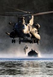 Keywords: Airman jumps air force MH-47 Chinook helicopter during helocast insertion extraction training Soldiers