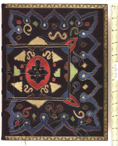 | Keywords: -An album containing miscellaneous prints, watercolours, etc., mostly botanical or topographical, and some ms. verses.- - Upper cover (c154k12).jpg Style Panel design; Caption Upper cover; Colour Purple; Edge Unspecified exhibition history Decorative Technique Embroidered Tooled in gold; Cover Material Goatskin includes morocco turkey etc In a contemporary gold-tooled purple morocco binding signed by Hering The binding was later embroidered in colours Part of the Charles Ramsden Collection of Signed Bindings Accompanied by a blind tooled maroon grained leather box with a lock lined in blue velvet Yellow silk endleaves and pastedowns Turn ins elaborately tooled in gold object history Text c 1840; s l ; Unspecified object type Cc-zero place of creation Binding England place of discovery C Ramsden London Bookbinders p 81 British Library image http //www bl uk/catalogues/bookbindings/LargeImage aspx RecordId 020-000001450 ImageId ImageId 40330 Copyright BL An album containing miscellaneous prints watercolours etc mostly botanical or topographical and some ms verses Uploaded with GWToolset An album containing miscellaneous prints watercolours etc mostly botanical or topographical and some ms verses - Upper cover c154k12 http //www webarchive org uk/bldatasets/bindings/4918_4 jpg 19th-century bookbinding Bookbinding British Library Bookbindings |