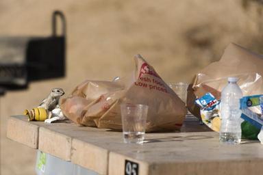 | Keywords: NPS/Brad Sutton; food, utensils, and containers left unattended in campsites attract wildlife. Desert animals are well adapted to arid conditions and are capable of providing for themselves. Human food can cause wild animals to become dehydrated and sick joshuatree nationalpark camping food keepwildlifewild jumborocks trash litter |