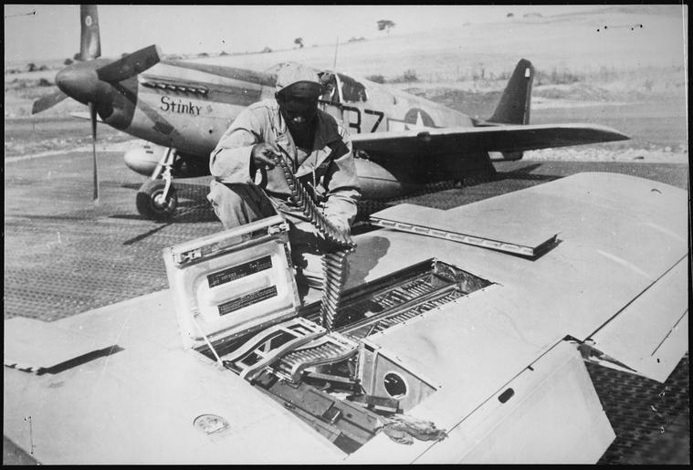 | Keywords: "An armorer of the 15th U.S. Air Force checks ammunition belts of the .50 caliber machine guns in the wings of a P-51... - NARA - 535764.tif Local identifier 208-MO-18H-32984 Office for Emergency Management Office of War Information Overseas Operations Branch New York Office News and Features Bureau 12/17/1942 - 09/15/1945 Still Picture Records Section Special Media Archives Services Division NWCS-S National Archives at College Park 8601 Adelphi Road College Park MD 20740-6001 ca 09/1944 Record group Record Group 208 Records of the Office of War Information 1926 - 1951 Record group ARC 535 Photographs of American Military Operations compiled 1942 - 1945 Series ARC 535762 Variant control numbers NAIL Control Number NWDNS-208-MO-18H-32984<br /> Select List Identifier AFRO/AM LIST 55 General notes Scope and content File unit File unit ARC yes NARA-cooperation PD-USGov P-51C Mustang Tuskegee Airmen Browning AN/M2 NARA TIF images with categorized JPGs |
