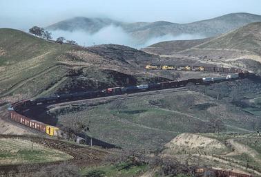 | Keywords: santa fe santafe at&sf atsf outdoor hill landscape mountain mountainside A great photo because of the perspective. The fog is called tule fog and it settles in the San Joaquin Valley and, as seen here, drifts up into the lower elevations of the Tehachapi Mountains. A Roger Puta Photograph A great photo because of the perspective. The fog is called tule fog and it settles in the San Joaquin Valley and, as seen here, drifts up into the lower elevations of the Tehachapi Mountains. A Roger Puta Photograph |
