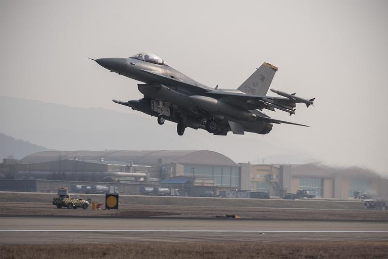 Keywords: Air force fight F-16 Fighting Falcon aircraft Fighter Wing takes off Daegu Air Base South Korea