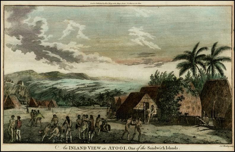 | Keywords: An Inland View in Atooi, One of the Sandwich Islands (1785).jpg author ; based on a 1778 etching after John Webber published by William Hodges Creator John Webber Creator William Hodges A hand-coloured w lithography lithograph depicting a village visited by Captain James Cook near Waimea Kauai County Hawaii Waimea Kauai in the Sandwich Islands now known as the Hawaiian Islands Based on an 1778 etching by John Webber which was published by William Hodges it is one of the few views of Hawaii made during James Cook Third voyage 1776 “79 Cook's third voyage 1776 “1779 1785 lithograph in 14 9 accession number Barry Lawrence Ruderman Antique Maps Inc inventory ID 25741 object history 1785 Published in A New Authentic and Complete Collection of Voyages Round the World see below by Alexander Hogg at the King's Arms 16 Paternoster Row London England As of 7 November 2011 One copy on sale at Barry Lawrence Ruderman Antique Maps Inc La Jolla California for US 275 00 credit line top London Published by Alex<sup>r</sup> Hogg at the Kings Arms „– 16 Paternoster Row ; caption An INLAND VIEW in ATOOI One of the Sandwich Islands ; bottom right J G Wooding sculp http //www raremaps com/gallery/detail/25741/An_Inland_View_in_Atooi_One_of_the_Sandwich_Islands_Kauai/Cook html; originally from cite book A new authentic and complete collection of voyages round the world undertaken and performed by royal authority Containing an authentic entertaining full and complete history of Captain Cook's first second third and last voyages undertaken by order of His present Majesty for making discoveries in geography navigation astronomy c in the Southern and Northern Hemispheres c c c and successively performed in the years 1768 1769 1770 1771-1772 1773 1774 1775-1776 1777 1778 1779 1780 The first voyage being professedly undertaken in his Majesty's ship Endeavour for making discoveries in the Southern Hemisphere and round the world The second in the Resolution and Adventure for making discoveries towards the South Pole and round the world The third and last in the Resolution and Discovery to the Pacific Ocean and To which will be added genuine narratives of other voyages of discovery round the world those of Lord Byron Capt Wallis Capt Carteret Lord Mulgrave Lord Anson / The whole of these voyages of Capt Cook F R S c now published under the immediate direction of George William Anderson Esq ; Assisted by a principal officer who sailed in the Resolution sloop and by many other gentlemen of the most distinguished naval abilities London Printed for the proprietors and published by Alex Hogg at the King's-Arms no 16 Pater-noster-Row and sold by all booksellers and news-carriers in Great Britain Ireland c 1784 “1786 156734437 <gallery>File A village scene from the Sandwich Islands Le Costume Ancien et Moderne by Giulio Ferrario 1827 jpg File Habitations and People of the Island of Atooi 1787 jpg</gallery> PD-Art-100 Paintings by William Hodges Works after John Webber Giulio Ferrario Hawaii in drawings Hawaii in the 1770s Historical images of Kauai James Cook 1785 lithographs Lithographs after other pictures Lithographs in the United Kingdom |