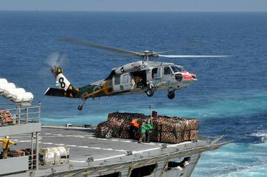 | Keywords: An MH-60H picks up cargo from USNS Bridge. (8224207904).jpg ARABIAN SEA Nov 25 2012 Sailors aboard the Military Sealift Command fast combat support ship USNS Bridge T-AOE 10 prepare to hook a load of supplies to an MH-60S Sea Hawk helicopter assigned to the Eightballers of Helicopter Sea Combat Squadron HSC 8 for transport to the Nimitz-class aircraft carrier USS Dwight D Eisenhower CVN 69 during a replenishment-at-sea Dwight D Eisenhower is deployed to the U S 5th Fleet area of responsibility conducting maritime security operations theater security cooperation efforts and support mission as part of Operation Enduring Freedom U S Navy photo by Mass Communication Specialist 1st Class Nathanael Miller/Released 121125-N-YX169-042 Join the conversation http //www facebook com/USNavy www facebook com/USNavy http //www twitter com/USNavy www twitter com/USNavy http //navylive dodlive mil navylive dodlive mil https //www flickr com/photos/usnavy/8224207904/ An MH-60H picks up cargo from USNS Bridge 2012-11-25 02 10 https //www flickr com/people/56594044 N06 Official U S Navy Page from United States of America PD-USNavy Official U S Navy Imagery https //flickr com/photos/56594044 N06/8224207904 2016-12-14 03 44 51 United States Government Work Naval ships of the United States Files from the U S Navy Flickr stream Files uploaded by Reguyla United States Navy |