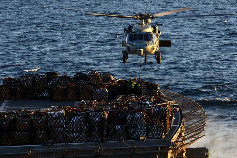 | Keywords: An MH-60S picks up cargo. (8291332324).jpg ARABIAN SEA Dec 18 2012 An MH-60S Sea Hawk from the Eightballers of Helicopter Sea Combat Squadron HSC 8 picks up stores from the flight deck of the Military Sealift Command fast combat support ship USNS Bridge T-AOE 10 during a replenishment-at-sea U S Navy photo by Mass Communication Specialist 2nd Class Kenneth Abbate/Released 121218-N-OY799-014 Join the conversation http //www facebook com/USNavy www facebook com/USNavy http //www twitter com/USNavy www twitter com/USNavy http //navylive dodlive mil navylive dodlive mil https //www flickr com/photos/usnavy/8291332324/ An MH-60S picks up cargo 2012-12-18 06 52 https //www flickr com/people/56594044 N06 Official U S Navy Page from United States of America PD-USNavy Official U S Navy Imagery https //flickr com/photos/56594044 N06/8291332324 2016-12-14 03 41 09 United States Government Work Naval ships of the United States Files from the U S Navy Flickr stream Files uploaded by Reguyla United States Navy |