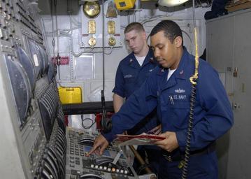 | Keywords: An operational test DVIDS254872.jpg en Petty Officer 1st Class Daniel Citizen an engineman from Lafayette La front and Petty Officer 2nd Class David Larson also an engineman from Bigelow Ark prepare the main machinery room number 2 operating station for an operational test of the ship's number 2 bravo diesel engine aboard the amphibious dock landing ship USS Fort McHenry Fort McHenry is participating in Operation Unified Response after a 7 0 magnitude earthquake caused severe damage in and around Port-a-Prince Haiti Jan 12 2010-02-24 Photo by Petty Officer 1st Class Edward Kessler https //www dvidshub net/image/254872 100224-N-+++++-010 2010-02-26 03 10 ABOARD USS FORT MCHENRY AT SEA PD-USGov-Military-Navy Operation Unified Response Images from DoD uploaded by Fæ |