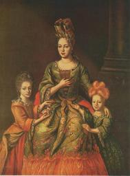 | Keywords: Anastasia Naryshkina with children.jpg Anastasia Naryshkina wearing fontange with her daughters Alexandra and Tatyana По т ет Анастасии а ышкиной с детьми Александ ой и Татьяной Ал а ышкина у ожденная княжна ышецкая жена Ки ила Алексеевича а ышкина последнего к авчего обе -коменданта Де пта и пе вого коменданта Пете бу га а с 1719 года московского губе нато а Ее дочь Александ а ве оятно уме ла в детстве так как не упоминается в опубликованных одословиях а ышкиных Д угая дочь Татьяна впоследствии стала женой гене ал-адми ала князя ихаила ихайловича Голицына century 18 oil Institution Tretyakov Gallery http //www tretyakovgallery ru/ru/collection/_show/image/_id/423 other versions PD-old-100 DEFAULTSORT 1700s ; Anastasia Naryshkina daughters 18th-century unidentified painters from Russia 18th-century portraits in the Tretyakov Gallery House of Golitsyn House of Naryshkin 18th-century family portraits 18th-century oil portraits of girls at three-quarter length 18th-century oil portraits of standing women at three-quarter length 18th-century women of Russia Columns in portrait paintings Group portraits with 3 persons Family portraits of Russia Flowered clothing in art Fontanges Hand on chest in portrait paintings Naïve portraits before 20th century Portrait paintings of mothers and daughters |