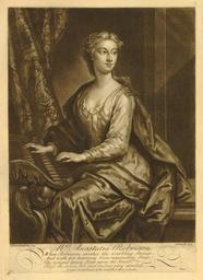 | Keywords: Anastasia Robinson seated at harpsichord Mezzotint 1727 John Faber the Younger after John Vanderbank.jpg Mezzotint of Anastasia Robinson seated at the harpischord by John the Faber the Younger after the 1723 oil painting by John Vanderbank The inscription reads When Robinson awakes the warbling strings And with her heavenly voice responding sings Thw winged graces float upon the sound Bless the sweet airs and smiling play around London sold by J Bowles Son at the Black Horse in Cornhill http //www britishmuseum org/research/collection_online/collection_object_details/collection_image_gallery aspx assetId 1372636001 objectId 1639983 partId 1 Digitised image British Museum 1727 John Faber the Younger PD-art PD-old-100 DEFAULTSORT Robinson Anastasia John Faber the Younger John Vanderbank 1690s births 1755 deaths 18th-century engraved portraits of sitting women at three-quarter length 18th-century opera vocalists 18th-century women of Great Britain Mezzotints Soprano opera vocalists from the United Kingdom Portraits with harpsichords |