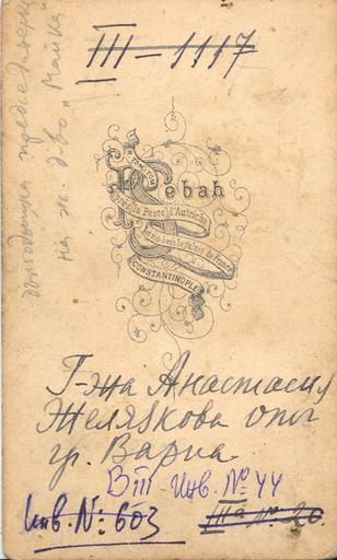 | Keywords: Anastasia Zheliazkova Back.jpg Анастасия д- Железкова сест а на Атанас Узунов една от лиде ите на ва ненското благотво ително женско култу но-п осветно д ужество айка п еводачка от ф енски на художествена и теософска лите ату а Г ъб на фотог афията http //catalog libvar bg/view/show_photos pl id 103845 SC pcAvtorid RC 2 SRV true LANG bg CS 85252 SA Sebah 2C 20Pascal 20A before 1886 Pascal A Sebah PD-old People of Varna Pascal Sebah | ||||