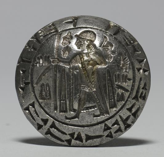 Keywords: Anatolian - Seal of Tarkummuwa, King of Mera - Walters 571512.jpg Hittite hieroglyphs surround a figure in royal dress The inscription repeated in cuneiform around the rim gives the seal owner's name the Hittite ruler Tarkummuwa This famous bilingual inscription provided the first clues for deciphering Hittite hieroglyphs ca 1400 BC Hittite silver cm 1 4 2 accession number 57 1512 5130 Found at Smyrna ca 1850 Iovanoff Constantinople Dikran Kelekian New York and Paris Henry Walters city Baltimore Walters Art Museum Henry Walters Acquired by Henry Walters 1925 Translation In heiroglyphics Tarkummuwa King of Mera The Taste of Maryland Art Collecting in Maryland 1800-1934 The Walters Art Gallery Baltimore 1984 place of origin Anatolia Turkey Walters Art Museum license Anatolian hieroglyphs Luwian hieroglyphs on media Cuneiform on media Hittite seals Hittite art Hittite language Hittite Empire Ancient Near East art in the Walters Art Museum Anatolia Cuneiform on seals Seal of Tarkummuwa 14th-century BC inscriptions Archaeological seals device Archaeological multilingual inscriptions Art from Smyrna Silver objects Stamp seals of archaeology |