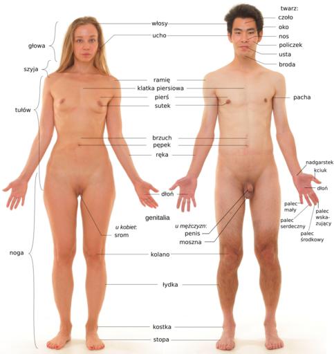 | Keywords: Anatomia czlowieka - nowy.svg pl Anatomia człowieka Mężczyzna i kobieta File Anterior view of human female and male without labels jpg 2012-12-21 Mikael Häggström Human body images in different languages cc-zero Personality rights Nude men and women with white background Medical diagrams in Polish |
