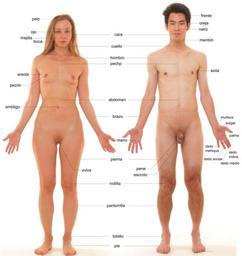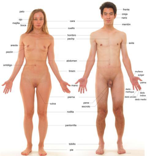 | Keywords: Anatomía humana - nuevo.png es Varón y hembra humanos rasgos anatómicos externos File Anterior view of human female and male without labels jpg 2012-12-21 Mikael Häggström Human body images in different languages cc-zero Personality rights Nude men and women with white background |