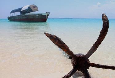 Keywords: anchor boot paradise sea water summer holiday beach sand beach turquoise clear ship south sea caribbean zanzibar trip around the world dream ocean sandbar