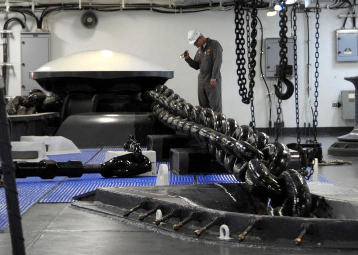 Keywords: anchor ship man inspecting inspection navy chain large close-up macro