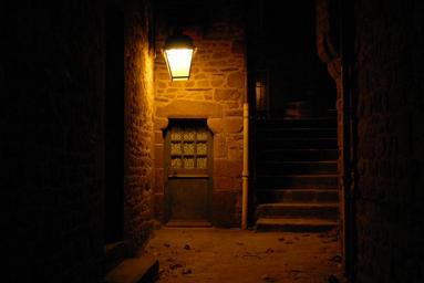 Keywords: ancient door street light mont st michel france monistary door architecture stone travel medieval europe historic light night exterior abbey