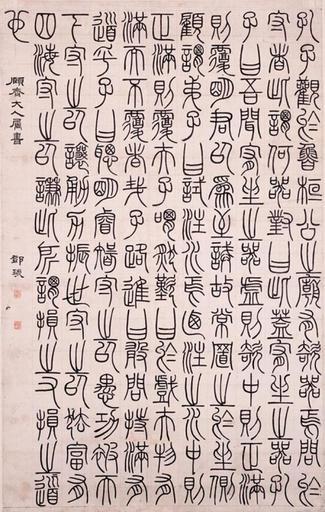 | Keywords: Ancient prose from the Xunzi, in seal script.jpg Artwork Creator Deng Shiru Ancient prose from the Xunzi in seal script before 1796 by Deng Shiru 1743 ”1805 Hanging scroll ink on paper 1796 Institution Palace Museum object history exhibition history credit line accession number http //www threeemperors org uk/index php pid 48 view image bl 4 Royal Academy of Arts part of the The Three Emperors 1662 - 1795 exhibition which ran from 12 November 2005 “17 April 2006 in London Website might be taken down at some point in future PD-old-100 Qing Dynasty Calligraphy in the Palace Museum Deng Shiru |