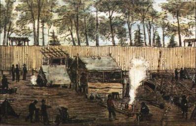 | Keywords: AndersonvilleShantySneden.jpg Andersonville Prison Drawing by Robert Knox Sneden made while a prisoner with watercolors added by him after his freedom Artwork by Robert Knox Sneden via copy at http //www tfaoi com/aa/2aa/2aa225 htm 1864 Robert Knox Sneden d 1918 PD-Art 1864 paintings Andersonville prison Robert Knox Sneden |