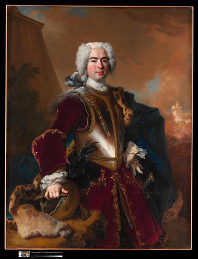 | Keywords: André François Alloys de Theys d'Herculais (1692–1779).jpg en André François Alloys de Theys d'Herculais 1692 “1779 Nicolas de Largillierre French Paris 1656 “1746 Paris Date <br> 1727<br> Medium <br> Oil on canvas<br> Dimensions <br> 54 1/4 x 41 1/2 in 137 8 x 105 4 cm Classification <br> Paintings<br> Credit Line <br> Gift of Mr and Mrs Charles Wrightsman 1973<br> Accession Number <br> 1973 311 4 This artwork is currently on display in Gallery 526 The sitter from a bourgeois family in Grenoble was a captain in the Clermont-Condé cavalry regiment; one of his campaigns in the north of Spain may be represented in the background His formal military attire is earlier in date than the portrait Largilliere may have owned the armor since the breastplate appears in three other portraits by the artist of roughly the same date This one exemplifies Largilliere's late restrained style 1727 http //www metmuseum org/Collections/search-the-collections/110001291 rpp 20 pg 11 ao on ft battle pos 220 fullscreen Nicolas de Largillierre French Paris 1656 “1746 Paris PD-old-100 Uploaded with UploadWizard Portrait paintings by Nicolas de Largillière Leopard clothing in art |