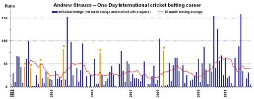 | Keywords: Andrew Strauss ODI batting career v2.png This graph details the w One Day International cricket performance of English cricketer w Andrew Strauss and was created by en wiki w user EdChem Each bar indicates a single ODI game blue ones for innings in which he was dismissed orange ones marked with a square for innings in which he batted but was not out The red line shows his 10 match moving average as at the end of each match An alternative version w File Andrew Strauss ODI batting career v1 png instead shows his career batting average <p>The graph was generated with Microsoft Excel 2003 the resulting chart being copied to Adobe Photoshop 9 and saved in png format using data from w Cricinfo http //stats espncricinfo com/ci/engine/player/20387 html class 2;template results;type batting;view innings and w Howstat http //www howstat com au/cricket/Statistics/Players/PlayerProgressBat_ODI asp PlayerID 3148 This version is current as at 23 January 2012 which is also the date it was prepared; it was uploaded the following day This graph details the w One Day International cricket performance of English cricketer w Andrew Strauss and was created by en wiki w user EdChem Each bar indicates a single ODI game blue ones for innings in which he was dismissed orange ones marked with a square for innings in which he batted but was not out The red line shows his 10 match moving average as at the end of each match An alternative version w File Andrew Strauss ODI batting career v1 png instead shows his career batting average <p>The graph was generated with Microsoft Excel 2003 the resulting chart being copied to Adobe Photoshop 9 and saved in png format using data from w Cricinfo http //stats espncricinfo com/ci/engine/player/20387 html class 2;template results;type batting;view innings and w Howstat http //www howstat com au/cricket/Statistics/Players/PlayerProgressBat_ODI asp PlayerID 3148 This version is current as at 23 January 2012 which is also the date it was prepared; it was uploaded the following day 24 January 2012 own EdChem talk Uploads other versions EdChem wikipedia en Cc-zero Original upload log page en wikipedia Andrew+Strauss+ODI+batting+career+v2 png wikitable - 2012-01-24 00 29 36 1340× 525× EdChem This graph details the One Day International cricket performance of English cricketer Andrew Strauss and was created by en wiki user EdChem Each bar indicates a single ODI game blue ones for innings in which he was dismissed orange ones ma - Uncategorized 2016 July 24 |