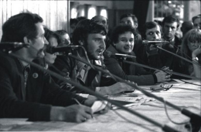 Keywords: Andrzej Kolodziej Kaczynski.jpg pl Podczas obrad MKZ w Stoczni Gdańskiej im Lenina w sierpniu 1980 z Lechem Kaczyńskim own Kafund 1980-08-20 Cc-zero Andrzej Kołodziej